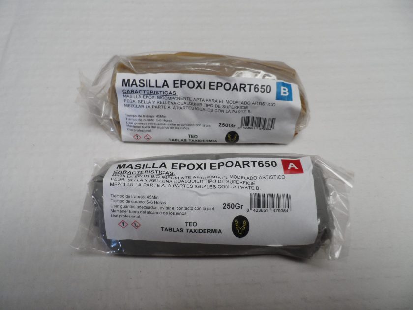 Es una herramienta muy útil para realizar modelados, restauraciones y ajustes en las piezas montadas. Este tipo de pasta epoxi es una resina de dos partes que, al mezclarse, reacciona y se endurece, formando una masa sólida y duradera. Es ampliamente utilizada para reconstruir partes del animal, rellenar huecos o detallar ciertas áreas que requieren mayor precisión.